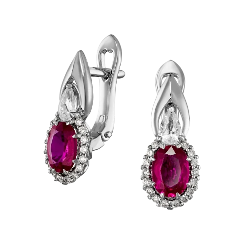 Филигранно исполненные серьги с непревзойденными по насыщенности цвета рубинами позволят владелице привлечь к себе внимание того мужчины, кто будет ей по сердцу.