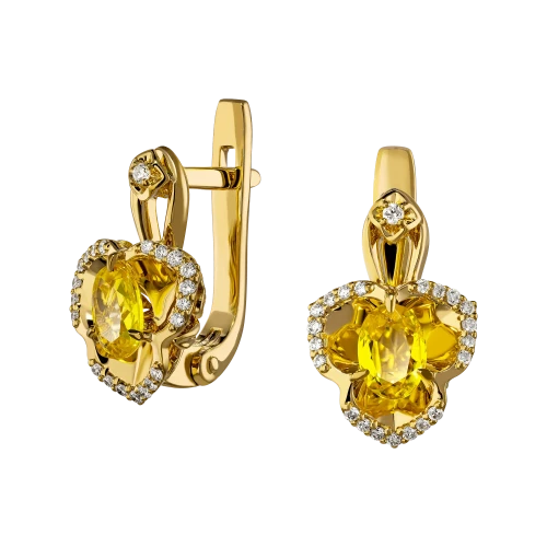 Два восхитительных минерала, привезенных из Мозамбика, стали полноправными лидерами утонченных серег с тремя лепестками из глянцевого золота. В этой солнечной стране находят лучшие из лучших минералов, что наглядно демонстрирует виртуозно ограненный дуэт общим весом более одного карата. Увлекательное обаяние солнечных камней дополнено инкрустацией из белых кристаллов первого порядка.