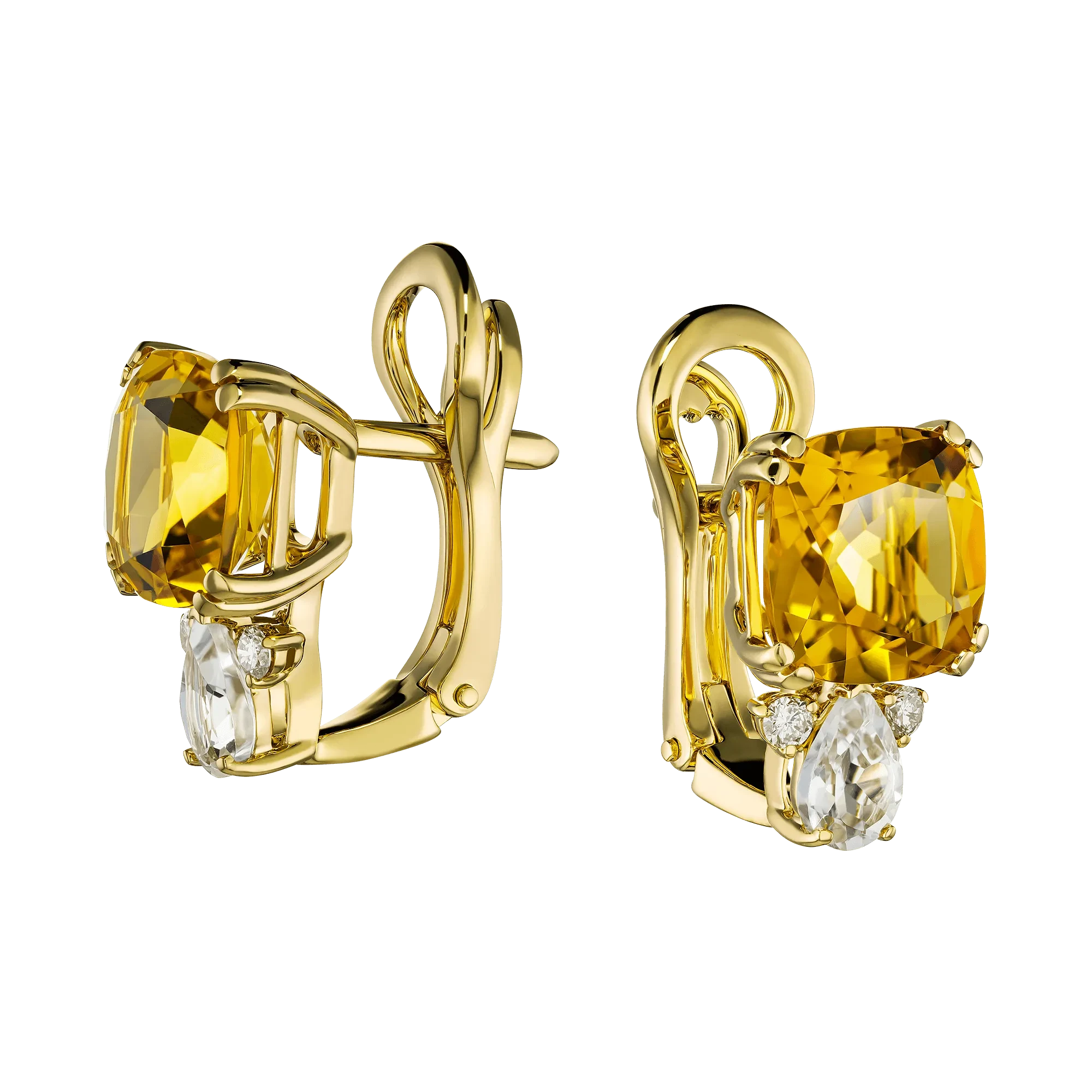 Открытая оправа из жёлтого золота подчёркивает природную теплоту цитринов и делает композицию визуально лёгкой. Каждая линия продумана так, чтобы свет свободно проникал внутрь самоцветов и возвращался наружу усиленным, превращая серьги в сияющий акцент образа.