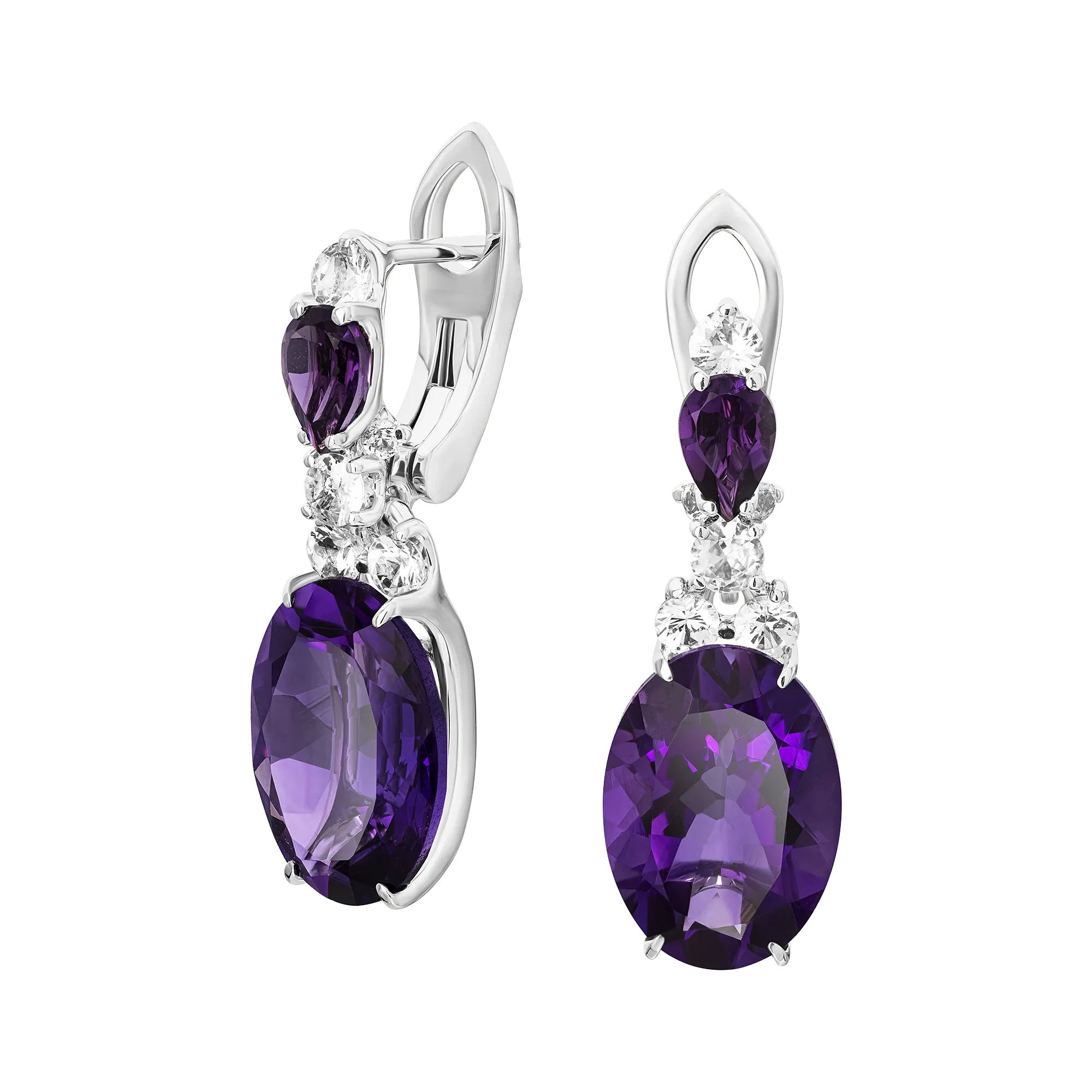 Такая волшебная волнующая магия стала возможна благодаря доминирующим в цветовой гамме украшения – головокружительным аметистам, по праву занявшим центральное место и получившим сверкающее сапфировое сопровождение.