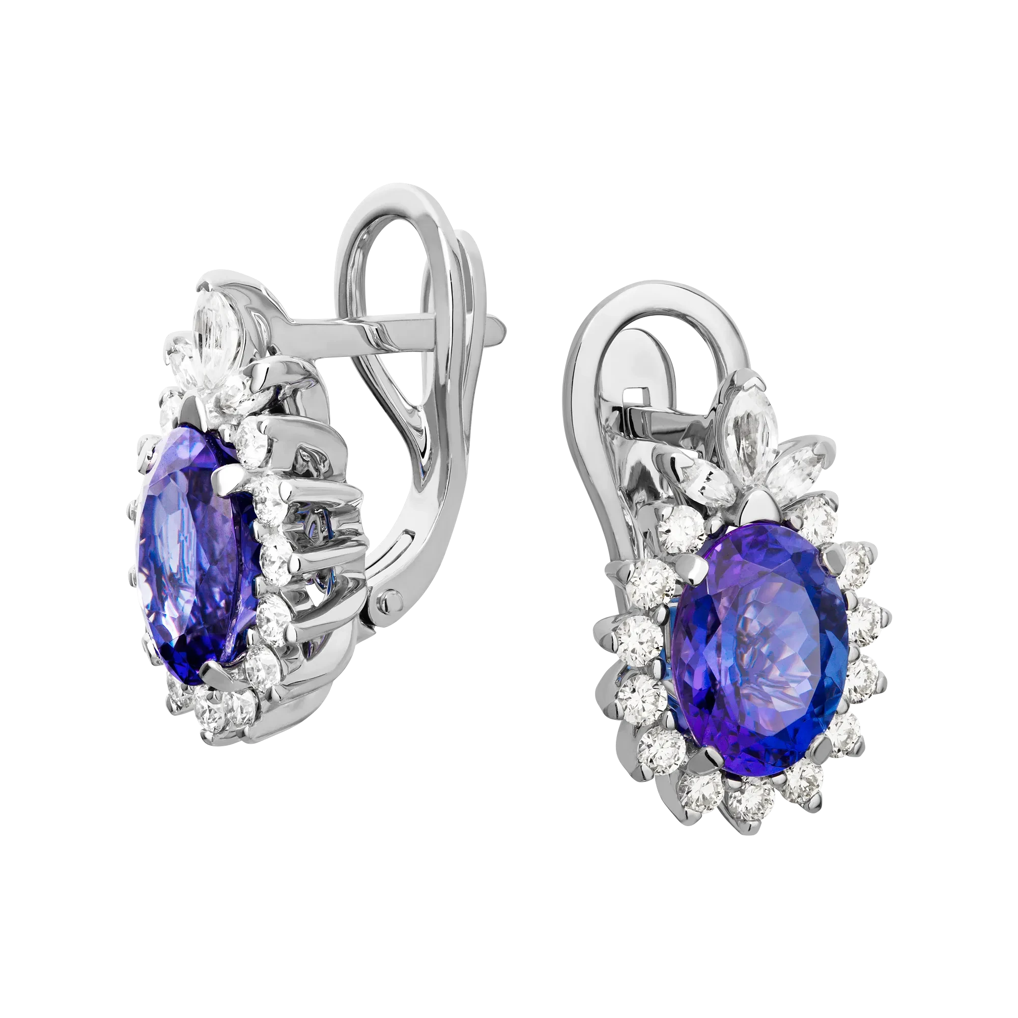 Прозрачные минералы первого порядка, образуя сверкающее обрамление вокруг танзанитов, волшебно дополняют магию и совершенную красоту эксклюзивных серег, одним своим названием способными создать позитивный настрой в сердце владелицы и возродить в душе надежды, которые, казались, неисполнимыми.