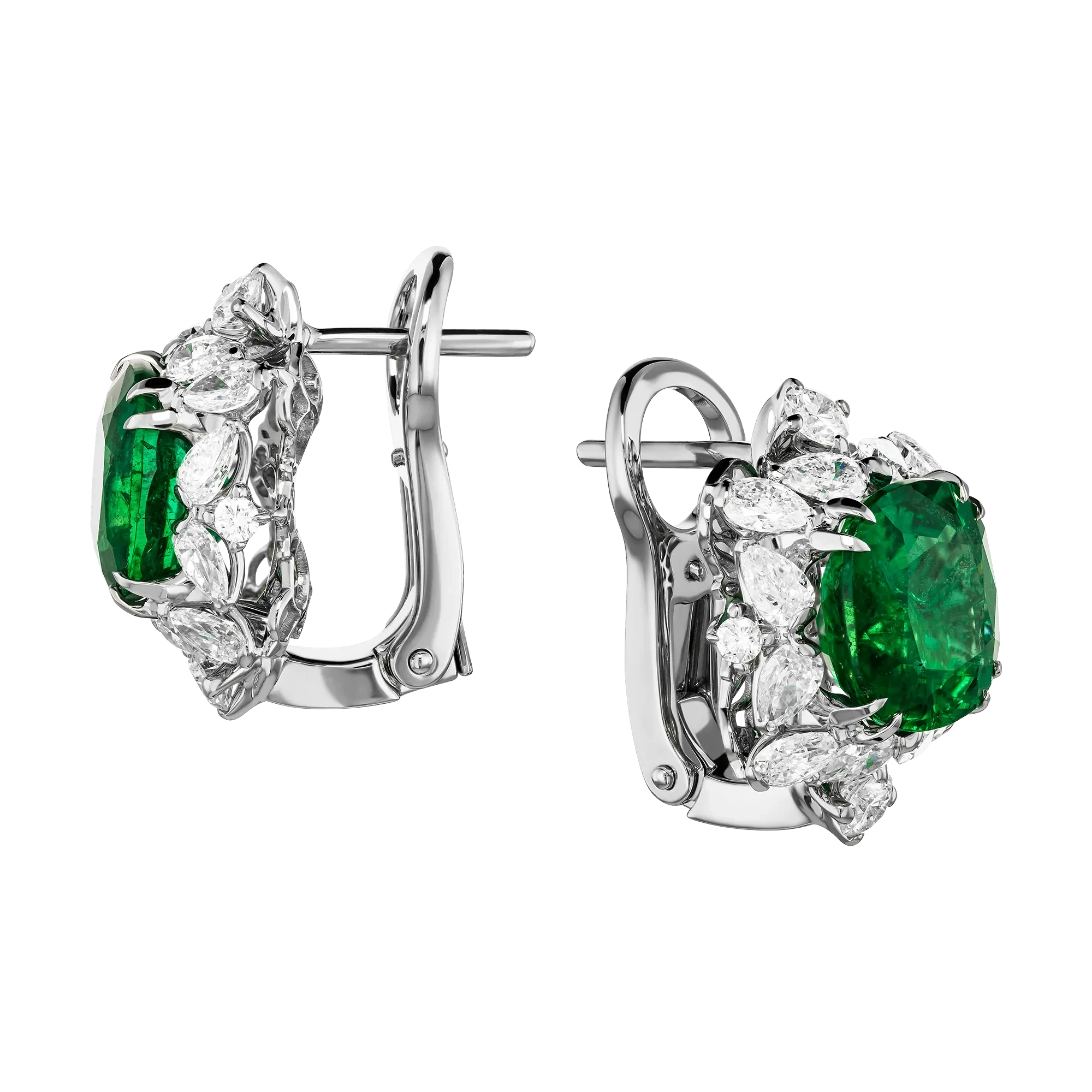 Обрамление из крупных бриллиантов разной огранки формирует световой ореол вокруг каждого изумруда, усиливая эффект внутреннего свечения. Эти акценты создают тонкое ощущение движения – словно чувство превращается в свет и приобретает форму.