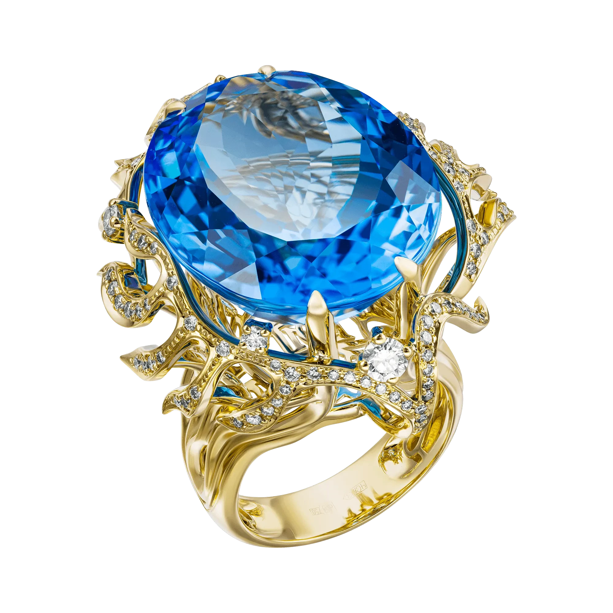 Лучше всего с перечисленными задачами справляются эксклюзивные украшения, подобные высокохудожественному гарнитуру «Единство достоинств». В его солнечной основе, тщательно проработанной мастерами, придавшими линиям из желтого золота элегантную экспрессию, ярко разливаются три редчайших топаза общим весом 88,21 оттенка Super Swiss, выделяющегося особенной насыщенностью, что отражается на постоянно растущей стоимости.