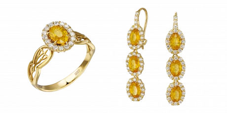 Earrings: Sapphire (yellow) (6) 3.38 ct;