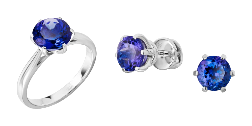 Тем ценнее гарнитур «Симфония». Лаконичный в своем исполнении, стильный, в котором нет ни единой отвлекающей внимание детали — вы замечаете лишь идеально ограненный танзанит… Тот редкий случай, когда ювелирное украшение уместно как днем, в офисе, так и в дополнении к вечернему наряду.