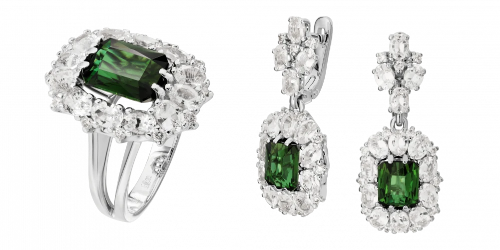 Говорят, что великий Гете, прогуливаясь по саду венецианского дипломата Джусти, был так впечатлен его органикой, что упомянул в своих стихах. Именно этот зеленый оазис в одноименном ювелирном сете олицетворяют великолепные бразильские турмалины сочно-зеленого цвета, окруженные сиянием безупречных сапфиров и бриллиантов.