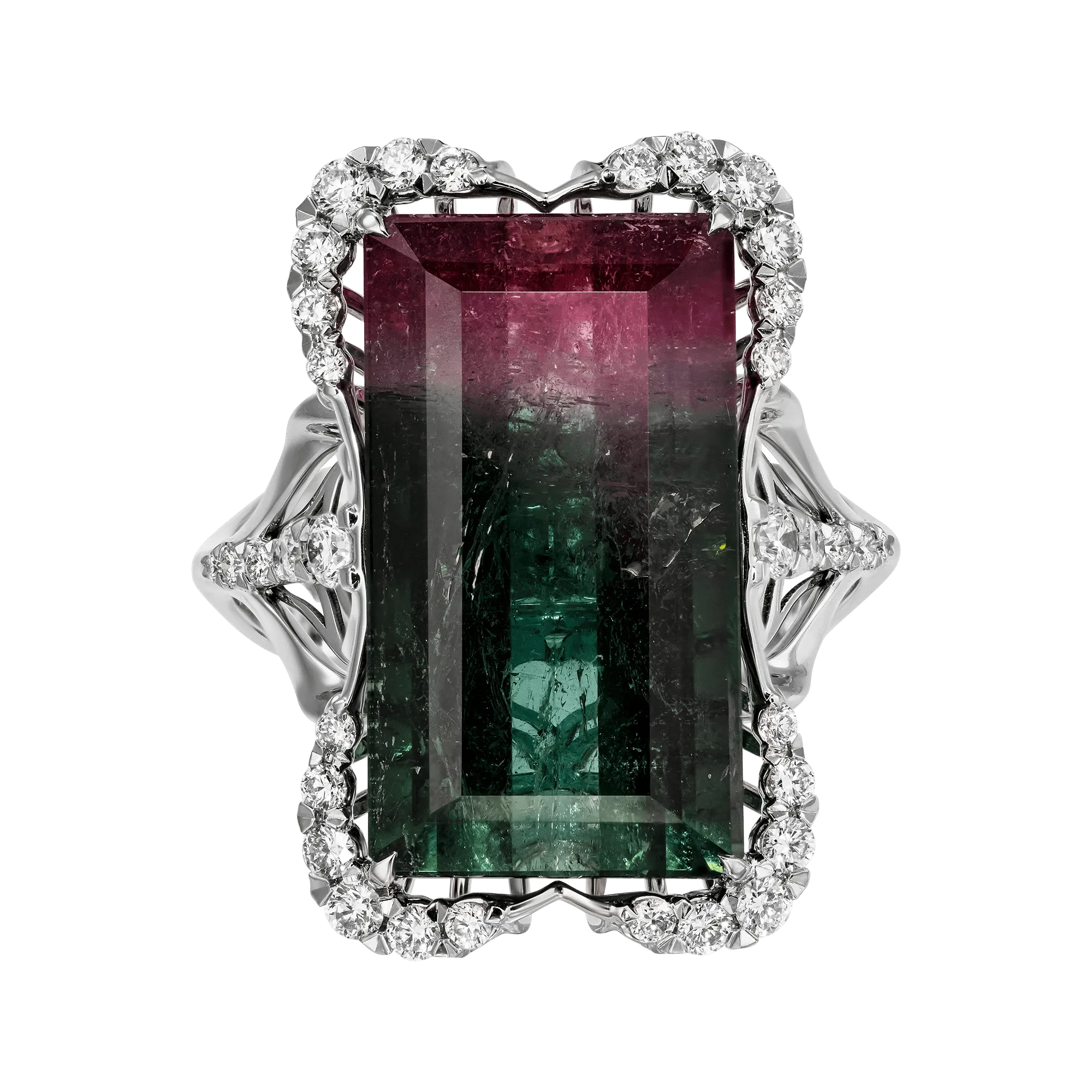 Название украшения переводится с французского как «Богема». С помощью четырех десятков бриллиантов подчеркнуто не только высокохудожественное плетение кольца, но и сложный цветовой ряд главного очарования – крупного полихромного турмалина. Удивительная расцветка кристалла весом 10,28 карат поражает природной гармонией, отражая экспрессию чувств и спектр эмоций, сопровождающих яркую, уникальную и полную событий жизнь.