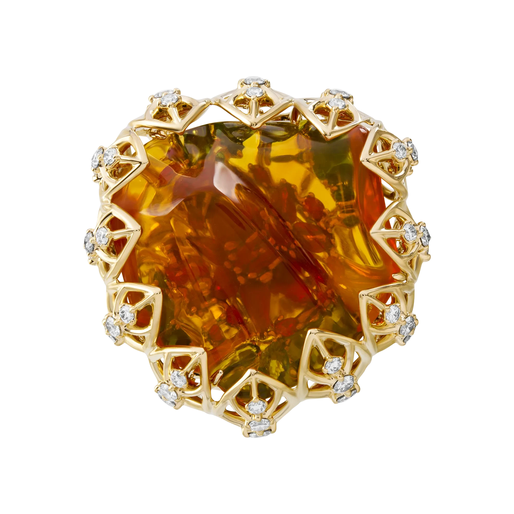 Создавая это оригинальное украшение, дизайнеры Maxim Demidov заимствовали художественность и энергетику Мексики.  В золотую оправу с щедрой бриллиантовой инкрустацией,  напоминающую национальный орнамент кулуакан, ювелиры поместили целое созвездие драгоценных камней - в толще огненного мексиканского опала весом 24,09 карат радужно переливаются рубины, тсавориты и сапфиры.