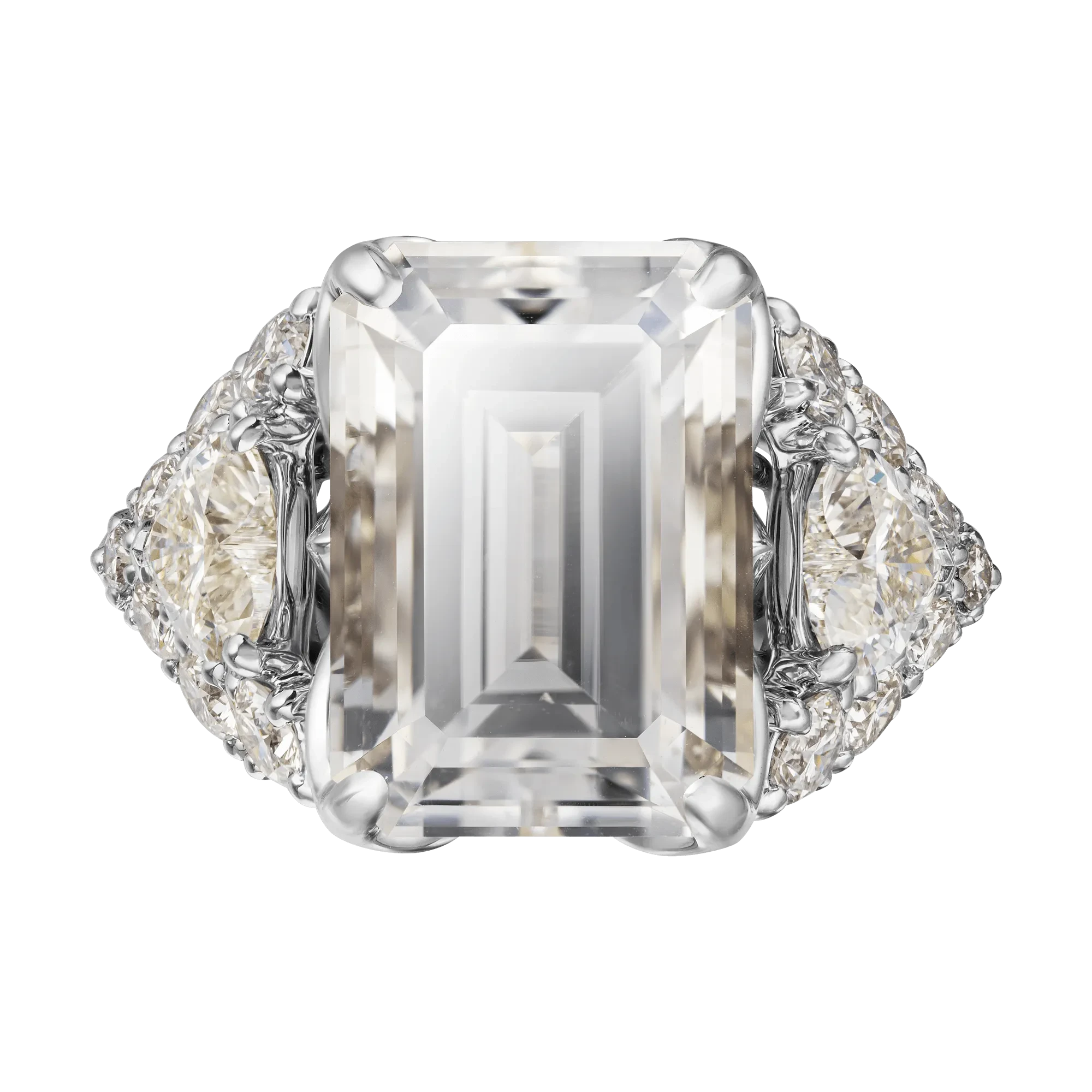 Вокруг чистейшего центрального кристалла весом 8,13 карат мастера выложили оригинальный узор из драгоценных камней первого порядка, ключевыми элементами которого стали два крупных бриллианта огранки «сердце». Этот обескураживающе-притягательный прозрачный ажур завораживает не только количеством минералов, но цветовой гармонией, демонстрирующей, что, как и владелица эксклюзивного кольца, фенакит заслуживает лучшего обрамления.