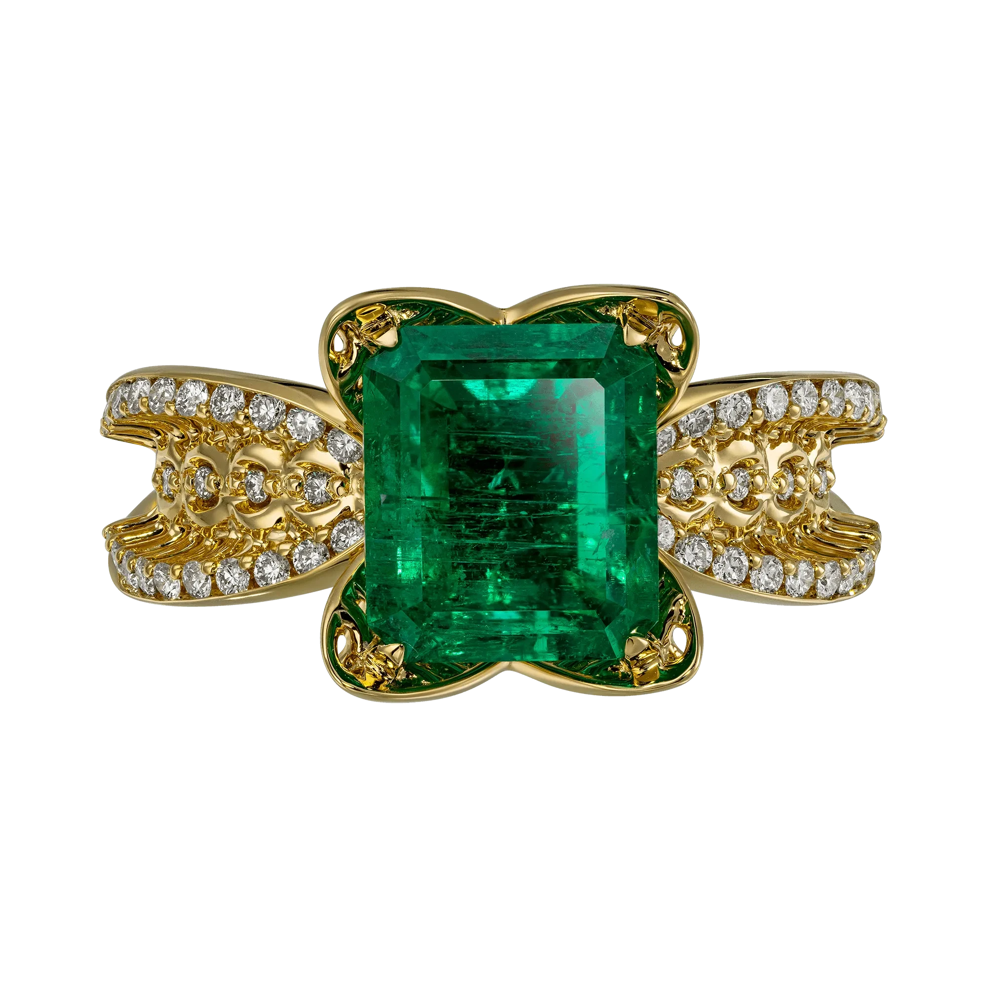 Конечно, кольцо с таким головокружительным дизайном смотрелось бы потрясающе и с другим минералом, тем более ювелирный дом Maxim Demidov обладает одной из лучших коллекций самоцветов со всего мира. Но без такого идеального изумруда, оно потеряло бы тот романтический шарм, который владелица драгоценности будет ощущать каждый раз, когда дополнит им свой шикарный образ.