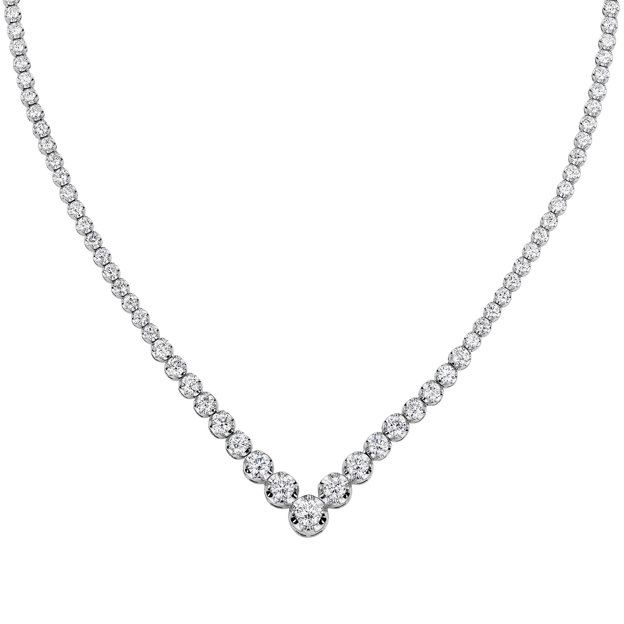 К зоне декольте драгоценные камни постепенно увеличиваются в размере, формируя выразительную кульминацию и подчеркивая смысл названия — свет, который концентрируется и раскрывает свою ценность полностью. Лаконичная оправа из белого золота служит идеальной архитектурой для бриллиантов, не отвлекая внимание и сохраняя чистоту композиции.