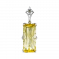 В центре композиции — редчайший жёлтый скаполит весом 26,54 карата. Самоцвет исключительный по своей природе: в ювелирной практике скаполит встречается крайне редко, а прозрачные кристаллы подобного размера относятся к категории коллекционных находок. Его цвет — ровный, чистый, кристаллический — не стремится к эффектности, но удерживает внимание за счёт ясности и внутренней силы.