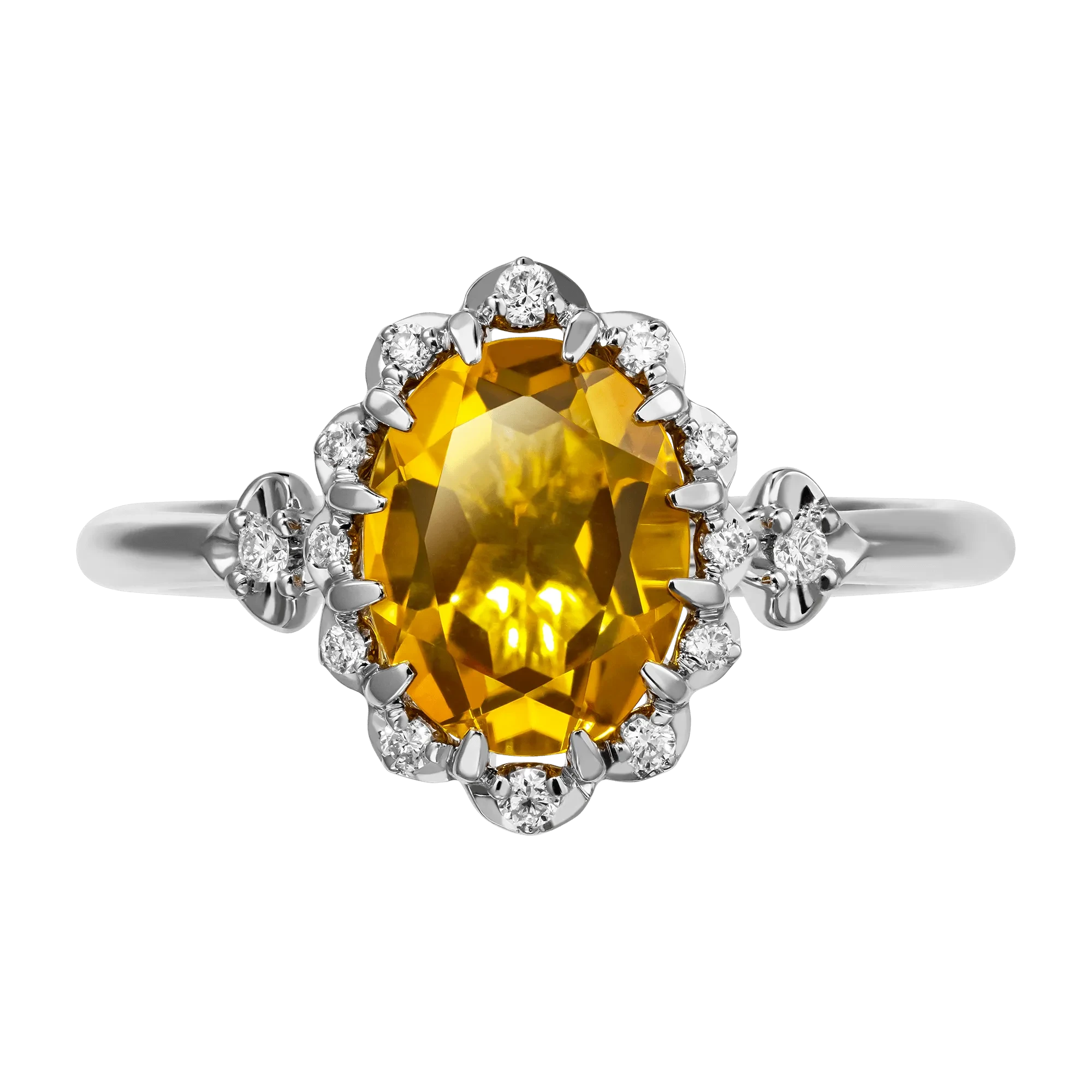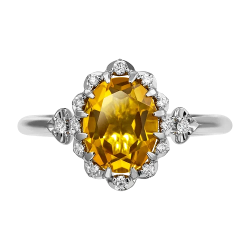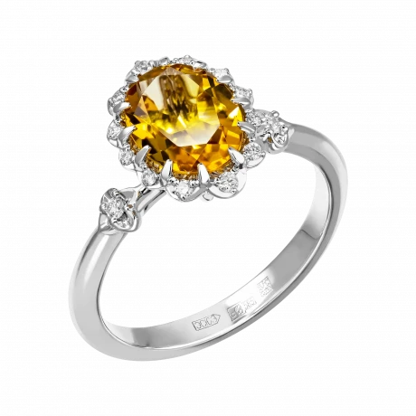 Выделяя главную особенность представленного в авторском кольце цитрина – насыщенный желтый цвет, очень приятный в любом женском образе, ювелиры Maxim Demidov обрамили центральный камень узором из бриллиантов.