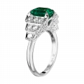 В центре кольца сияет уральский изумруд весом 2,07 карата – драгоценный камень удивительной чистоты и насыщенности цвета, напоминающий прохладную глубину воды в чаше фонтана. Его природное происхождение и исключительное качество подтверждены швейцарским сертификатом GFCO GEM LAB. Яркость изумруда поддерживают бриллианты, расположенные по бокам, словно солнечные блики на струях воды.