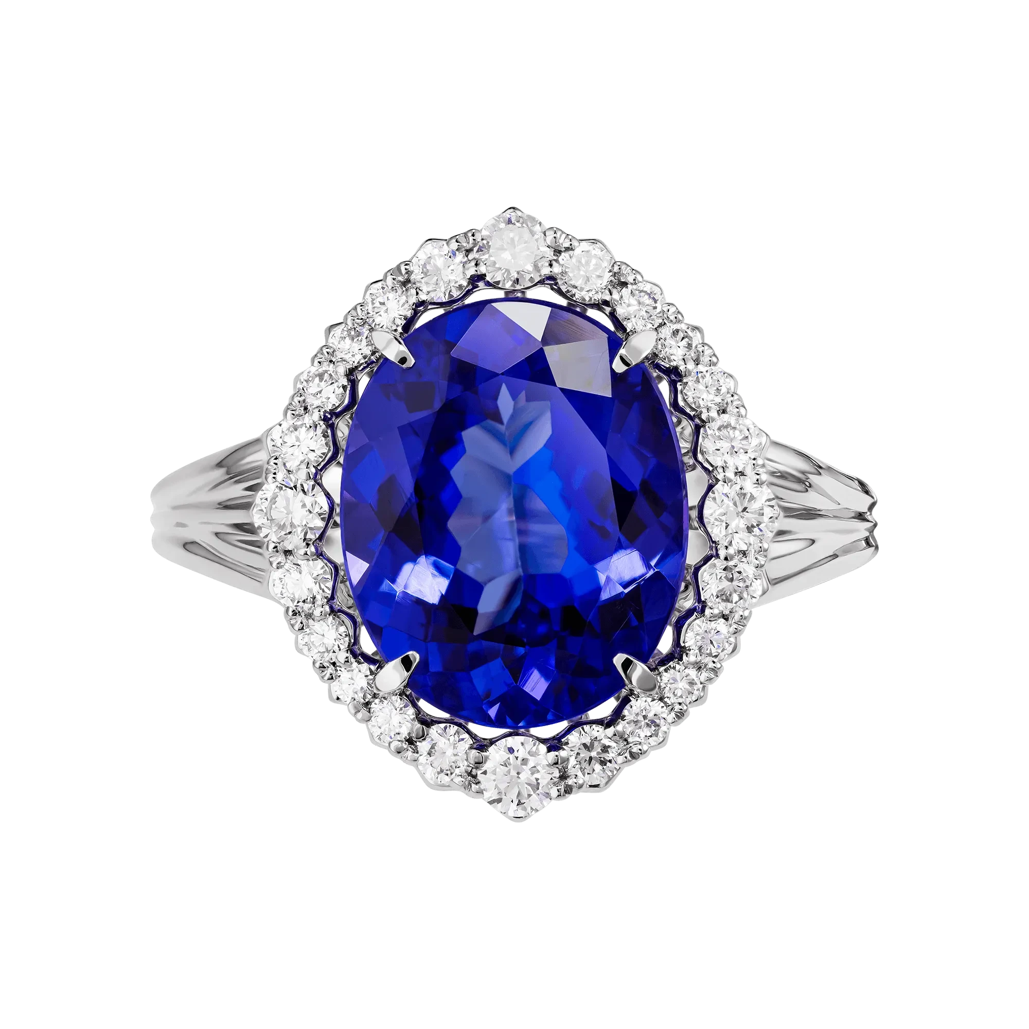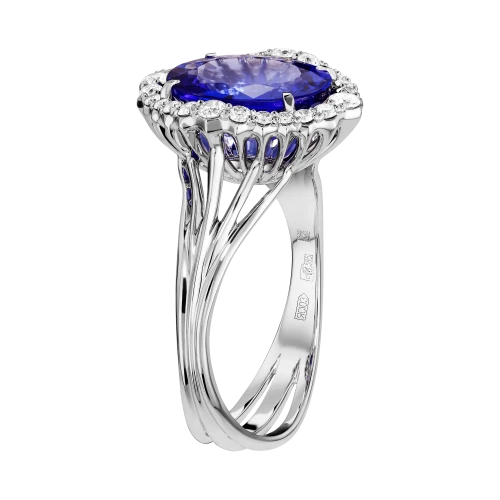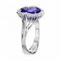 Кольцо «Общность с небесами» рождает ощущение прикосновения к вечности. В глубине танзанита таится сама философия неба – его изменчивость и постоянство одновременно. При одном взгляде драгоценный камень раскрывается светлой утренней лазурью, при другом – уходит в бесконечную глубину вечернего индиго, напоминая, что небеса никогда не повторяются и в этом их истинная мудрость.