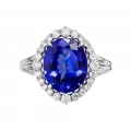 Ореол из бриллиантов словно звёздное сияние, обрамляющее небесный простор, а белое золото оправы придаёт композиции ощущение чистоты и ясности, как будто само небо было заключено в драгоценную форму.