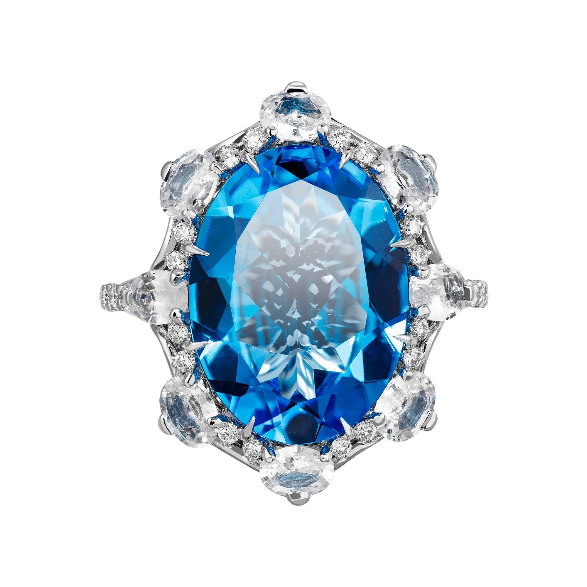 Символом чистоты пляжей испанского городка, практически каждый из которых отмечен голубым флагом, стал пленительный топаз весом более восьми карат, особенная лазурь которого имеет специальное название Super Swiss. Этот оттенок – визитная карточка элитного самоцвета, чьи высочайшие характеристики подтверждает бриллиантово-сапфировое окружение.