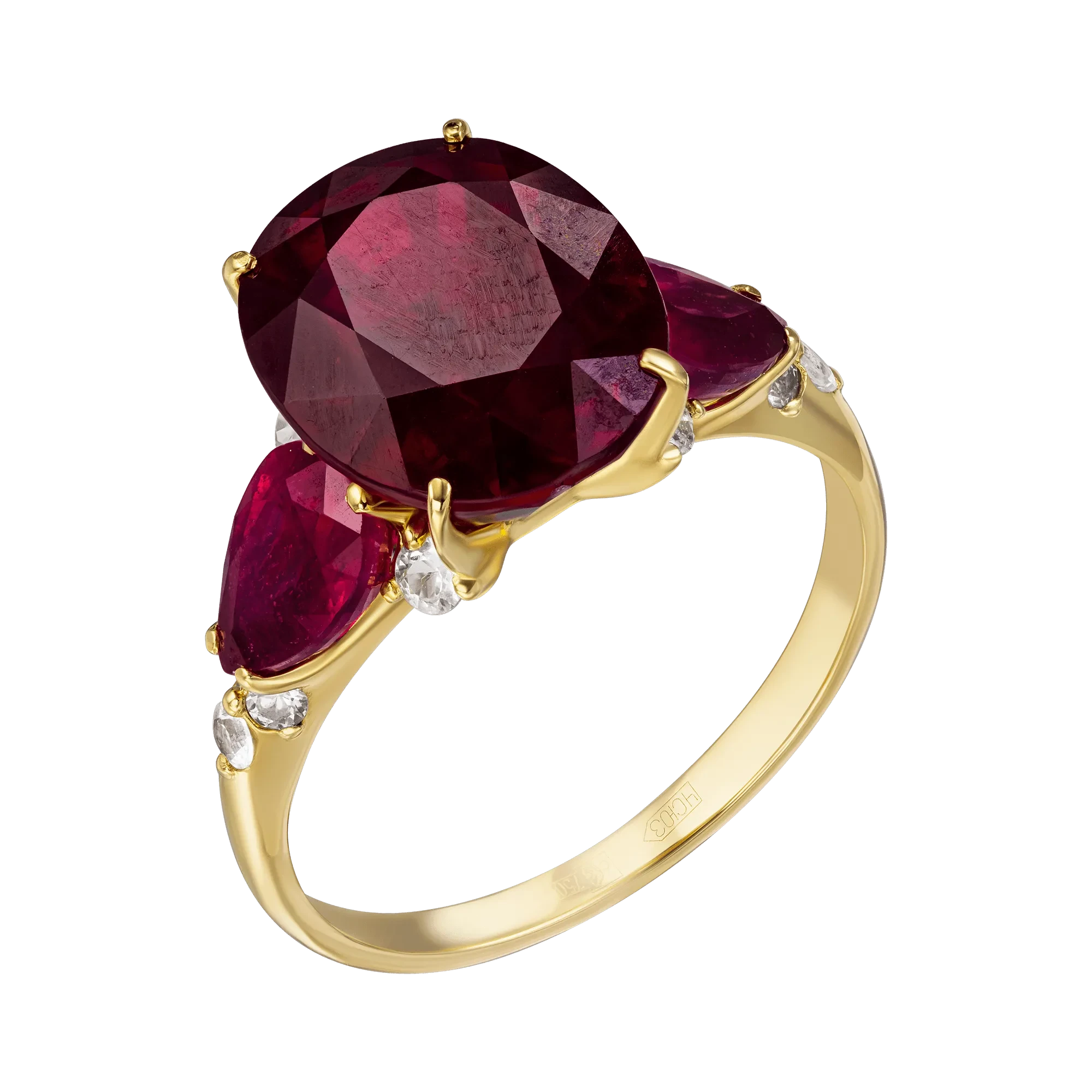 Не только подчеркивая красоту сразу трех рубинов, но и вкладывая в изумительное кольцо высокий символизм, заключающийся в стремлении одарить прекрасную даму талисманом невиданной силы, дизайнеры Maxim Demidov сочинили элегантное кольцо из желтого золота «Сила пламени».