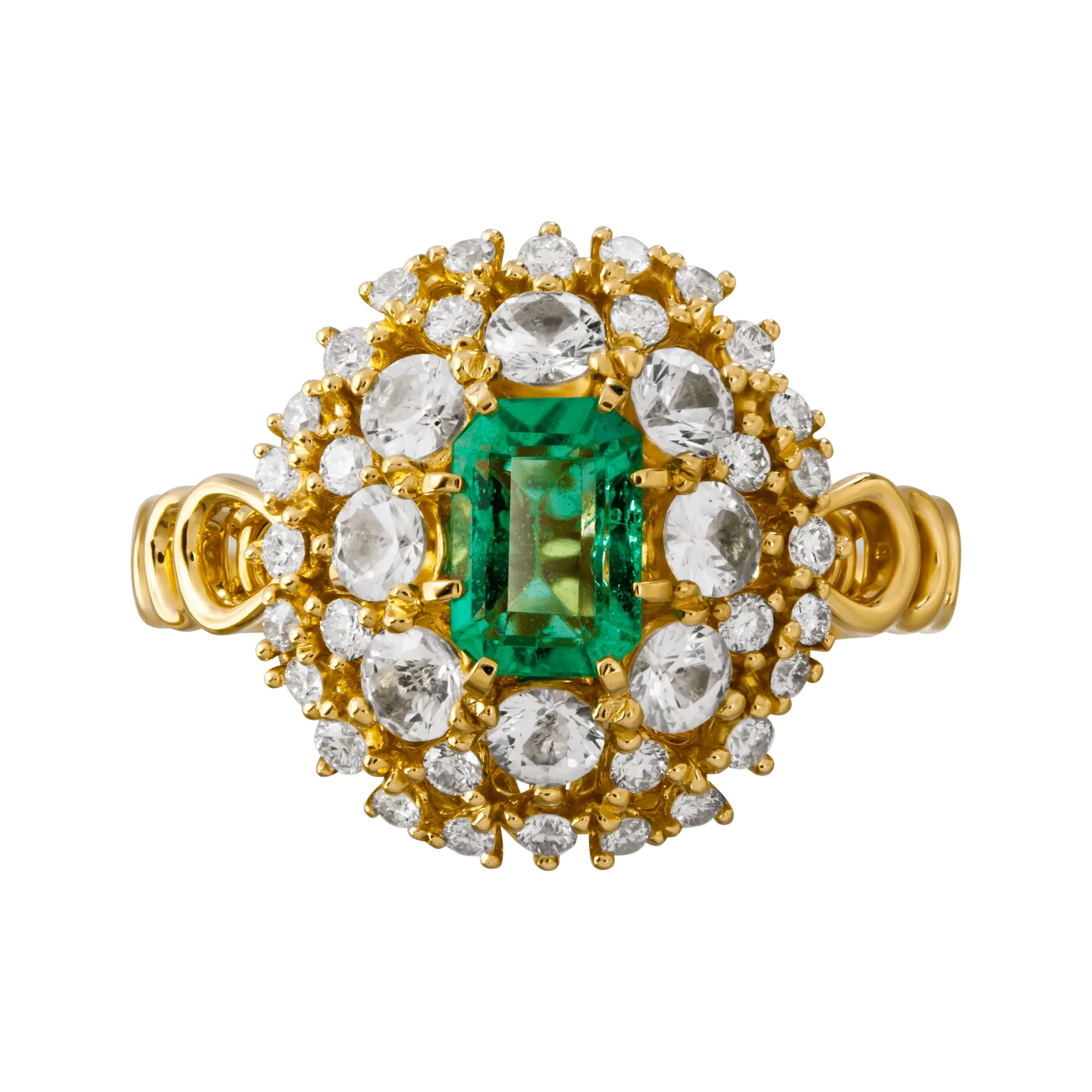 Эксклюзивное кольцо «Флор Эсмеральда», чье название переводится с испанского как «изумрудный цветок», сочинено художниками-дизайнерами с непосредственным участием великолепного изумруда – любимца богини Венеры. Удивительный по насыщенности цвета и чистоте кристалл поражает эффектным блеском.