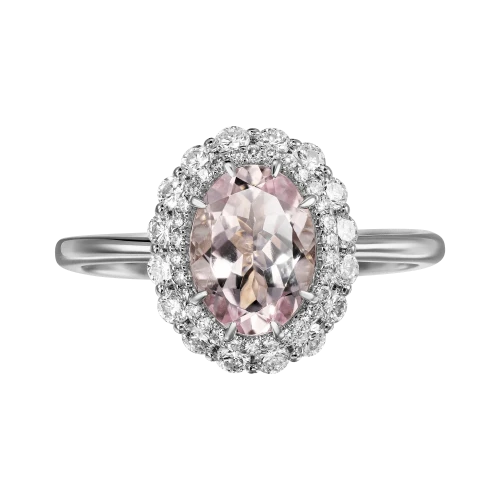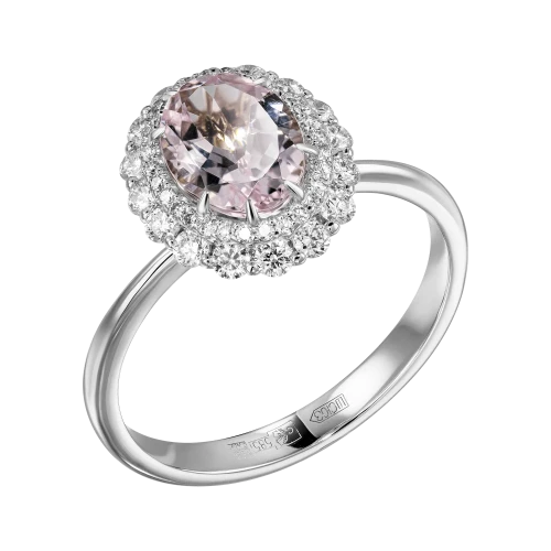 Такую уникальную «вседозволенность» кольцу обеспечивает главный акцент – добытый в Бразилии чистейший морганит, заключенный в классическую оправу из белого золота. Минимализм в количестве деталей идеально компенсируется количеством сверкающих бриллиантов – более сорока кристаллов первого порядка обрамляют восхитительный центральный самоцвет весом более одного карата.