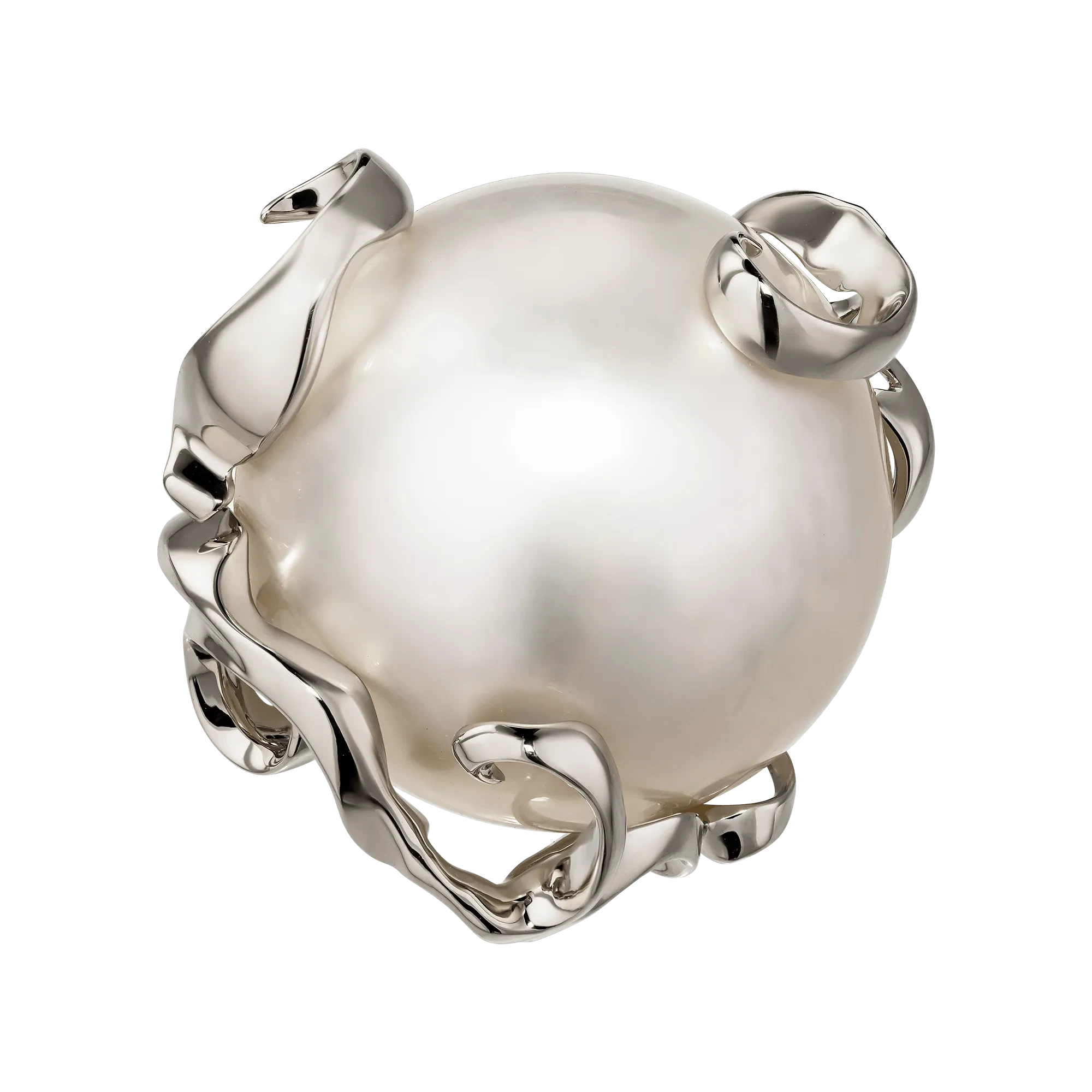Доказывая, что жемчужные украшения не выдохлись за столетия популярности, а наоборот, снова вошли в моду, мастера Maxim Demidov сочинили благородное кольцо «В брызгах шампанского». Плавные формы, уникальная симметрия, редкий цвет природного сокровища весом 27,40 карат – перед нами очень эстетичный глянцевый пузырек, как будто летящий в высокохудожественном бокале из белого золота.