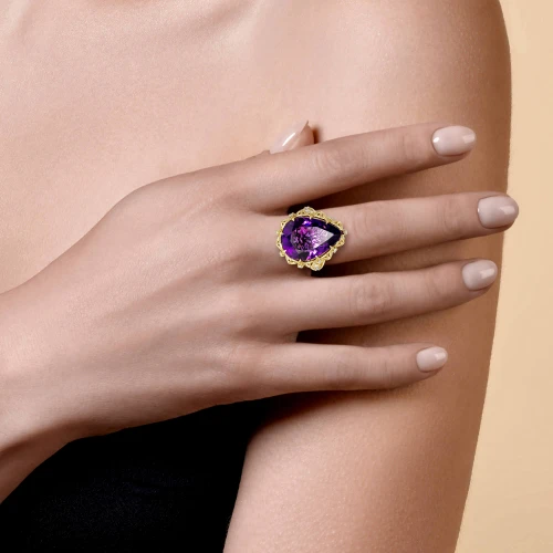 На примере эксклюзивного кольца с аметистом вы сможете легко убедиться, что этот самоцвет улучшает душевное состояние, создает особый настрой, а приятные ассоциации, вызванные им, навсегда закрепляются в сознании.