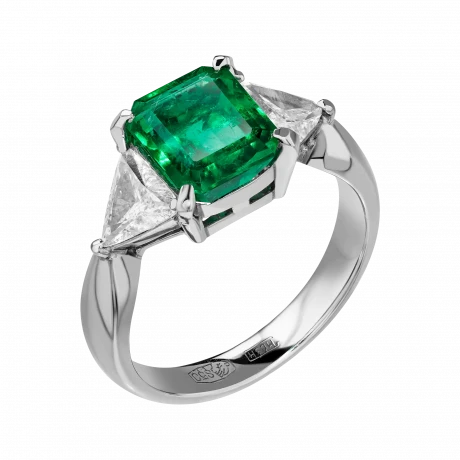 Красиво любить и быть абсолютно любимой – таков посыл пленительного кольца с прекрасным изумрудом.