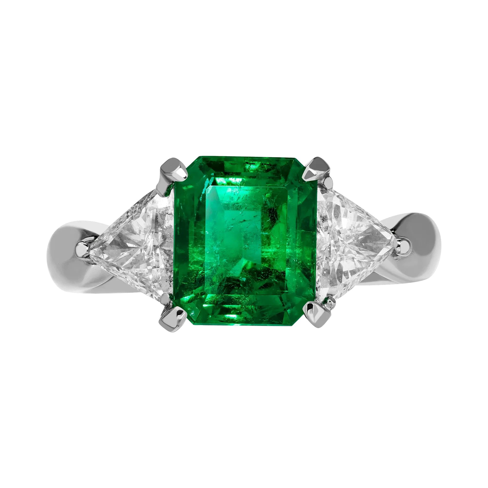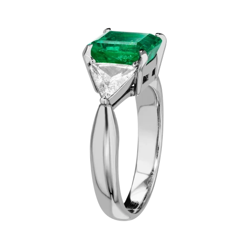Сердечному роману двух гениев ювелиры Maxim Demidov посвятили восхитительно утонченное кольцо из платины, блистающее камнями первого порядка. На вершине эксклюзивного украшения светится природной зеленью уникальный изумруд из Колумбии. Сладостное сияние чистейшего смарагда весом более двух карат влечет отдаться его совершенству, подобно тому, как мы готовы принять любовь всем сердцем, ощущая ее проникновенное счастье. Цвет центрального камня вызывает еще больший трепет благодаря контрасту с двумя бриллиантами.