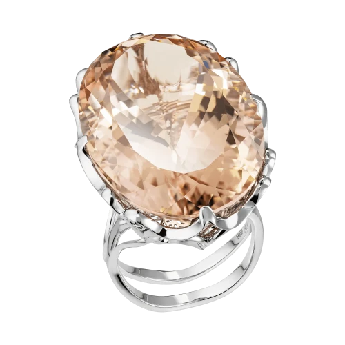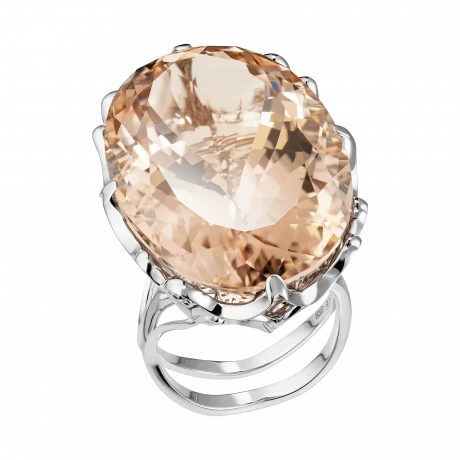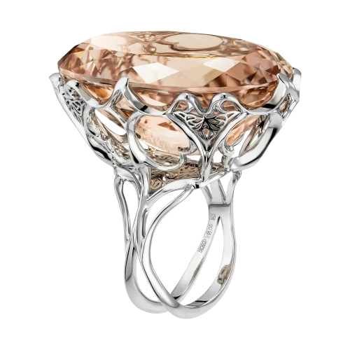 Ажурная оправа из белого золота повторяет ритм дыхания – её плавные линии будто тянутся к свету, обнимая самоцвет, но не удерживая его. Сквозь изящную конструкцию свободно проходят воздух и лучи, создавая эффект парения – будто украшение живёт собственным внутренним светом.