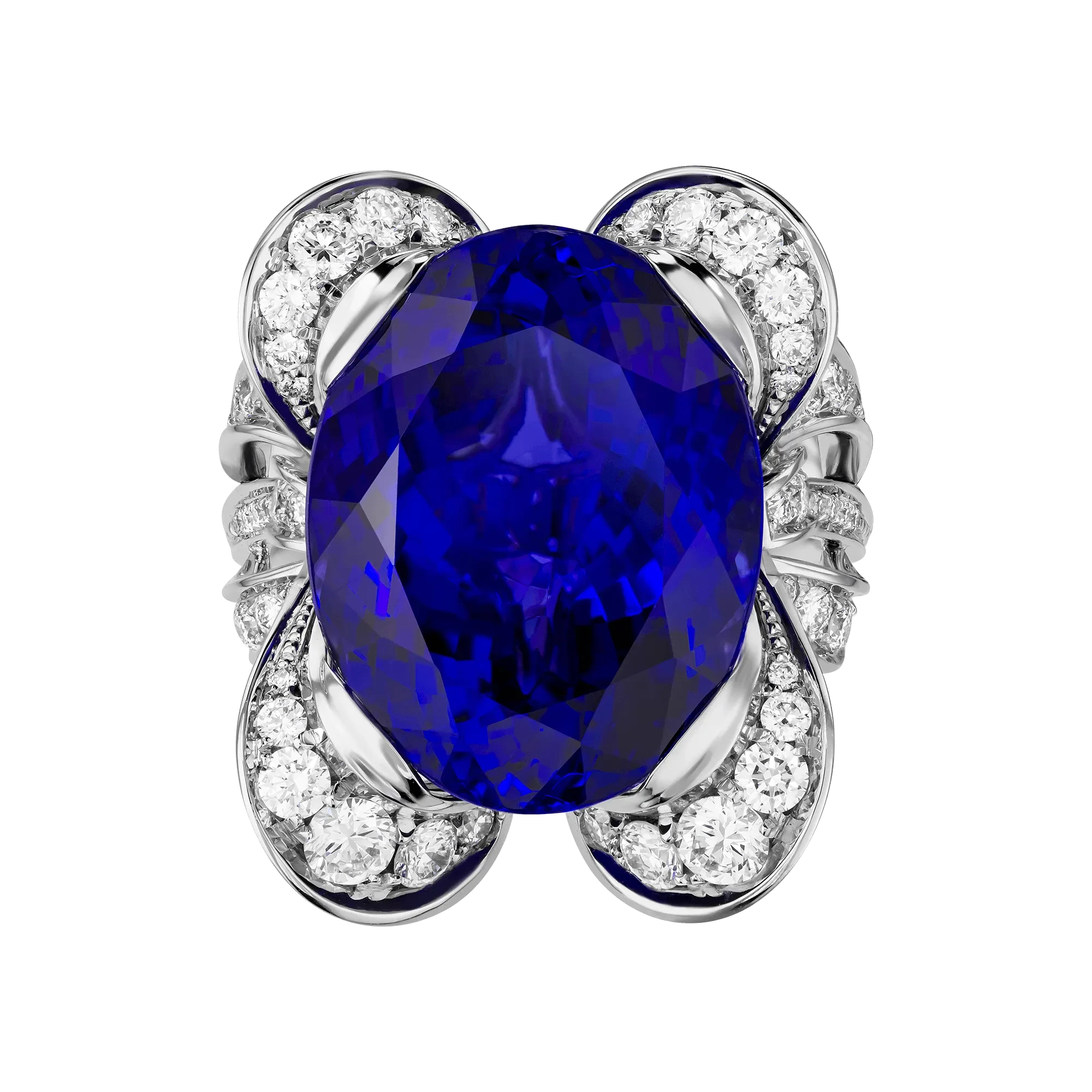 Два изящных банта из белого золота, расшитые бриллиантами, обрамляют самоцвет, подобно легкому жесту парижанки, которая умеет одним движением создать образ безупречной утончённости. Их воздушность придаёт композиции кокетливую мягкость и одновременно торжественность.