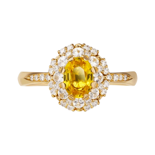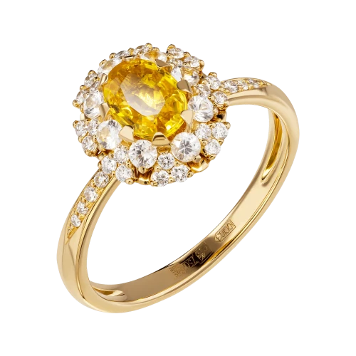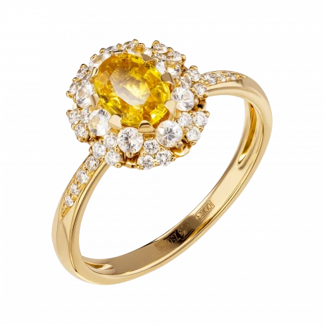 Мастера Maxim Demidov сочинили авторское кольцо исключительно из кристаллов первого порядка. Украшение будто соткано из солнечных лучей, настолько оно золотое и теплое по сиянию. В центре глянцевой оправы из желтого благородного металла красуется великолепный медовый сапфир весом в один карат. К ювелирам он попал прямиком с «самоцветного острова» – Шри-Ланки. Цветную красочность кульминационного кристалла подчеркивают безупречно прозрачные корунды и бриллианты.