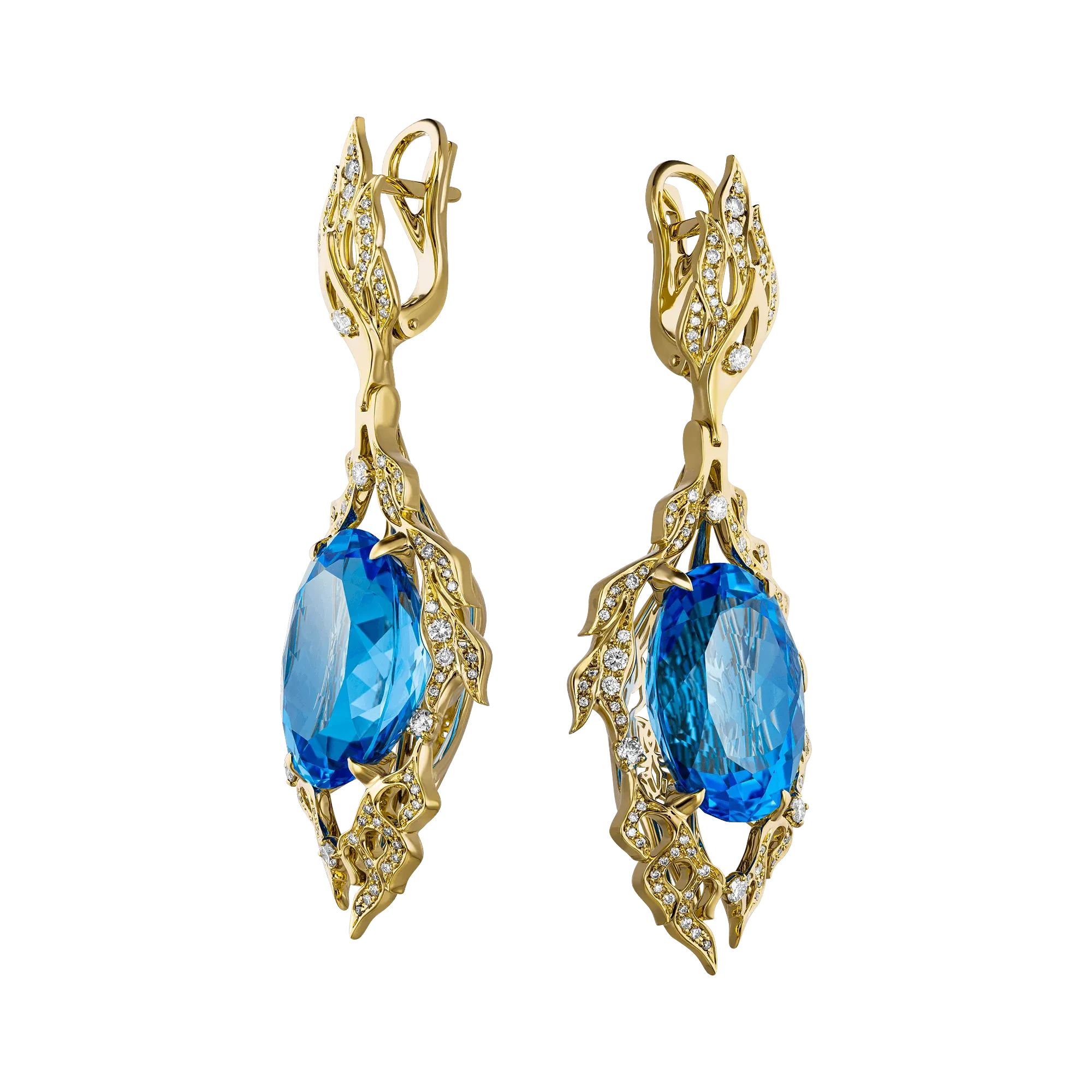 Красиво оттененные грациозными линиями золотой оправы, центральные минералы наиболее ценимого специалистами оттенка Super Swiss пробирают буквально до мурашек глубинной чистотой, задевая самые тонкие душевные струны даже тех, кто привык к элитным аксессуарам и считает роскошь неотъемлемой частью своей жизни.