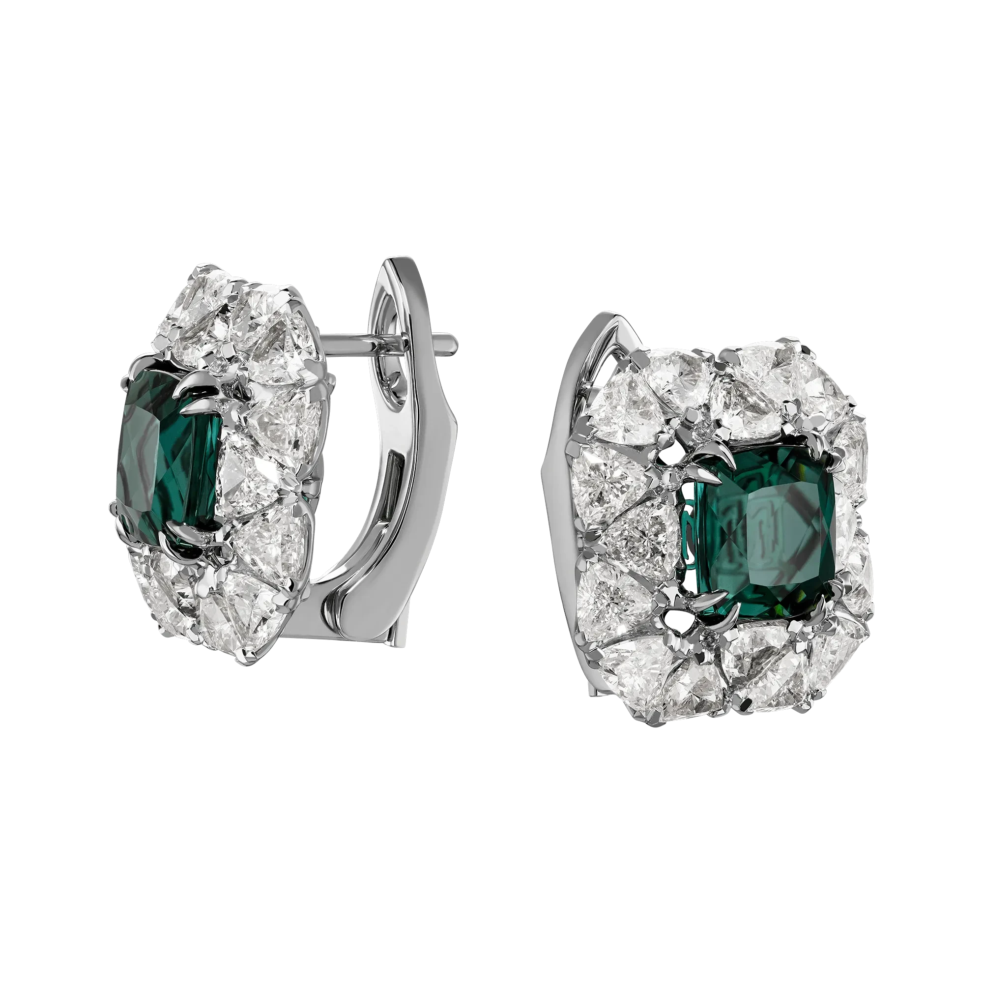 Чтобы уровень чуда из белого золота соответствовал архитектурной грации, мастера максимально насытили эффектные серьги бриллиантами, расположив их узором, который концентрирует и свет, и внимание на двух редких турмалинах индиголитах. Прозрачные кристаллы и виртуозная огранка тонко выделяют главный нюанс центрального дуэта общим весом 4,16 карат – красочные цветовые перемены, от синего к зеленому и обратно.