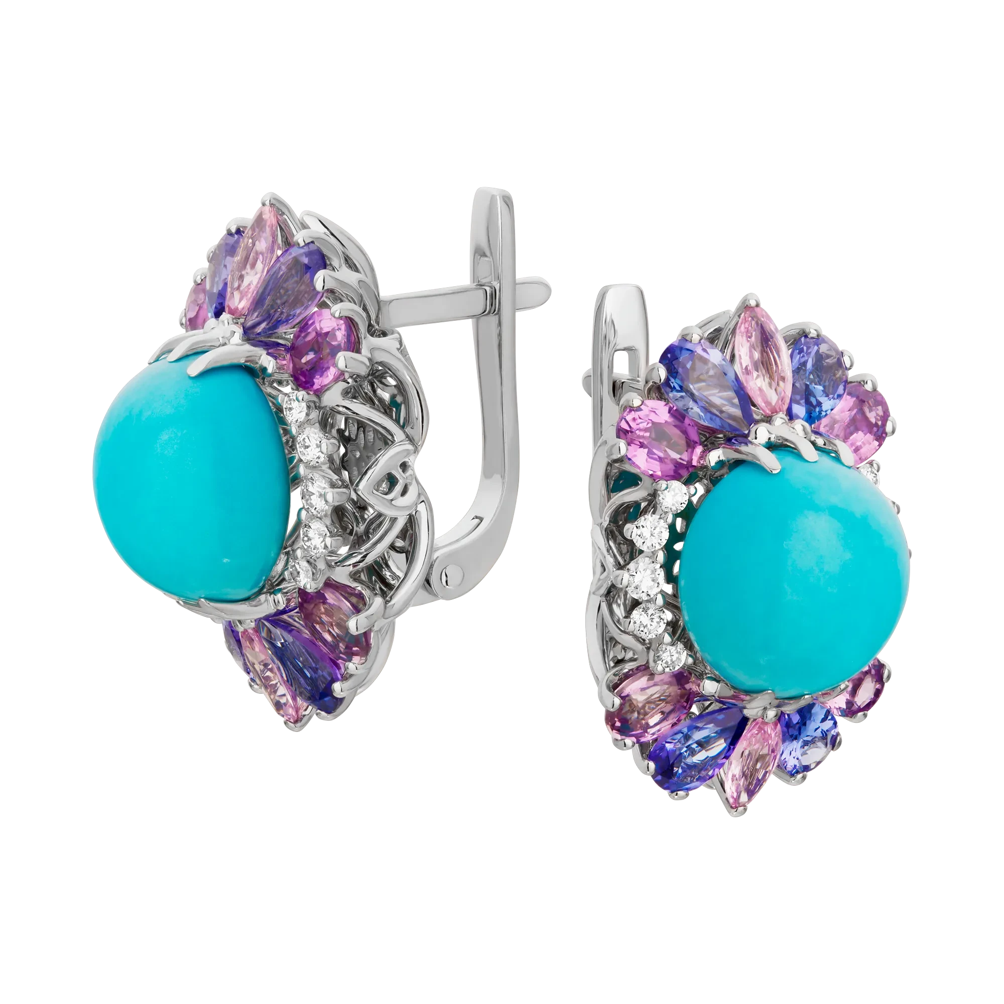 Чтобы мечта стала драгоценной явью, дизайнеры выстроили феерично яркую композицию из белого золота вокруг двух пронзительно голубых самоцветов, добытых на североамериканском континенте.  Чистейшая бирюза уже на протяжении 5 000 лет успешно выдерживает конкуренцию со стороны драгоценных камней, открытых в более поздний период.