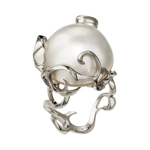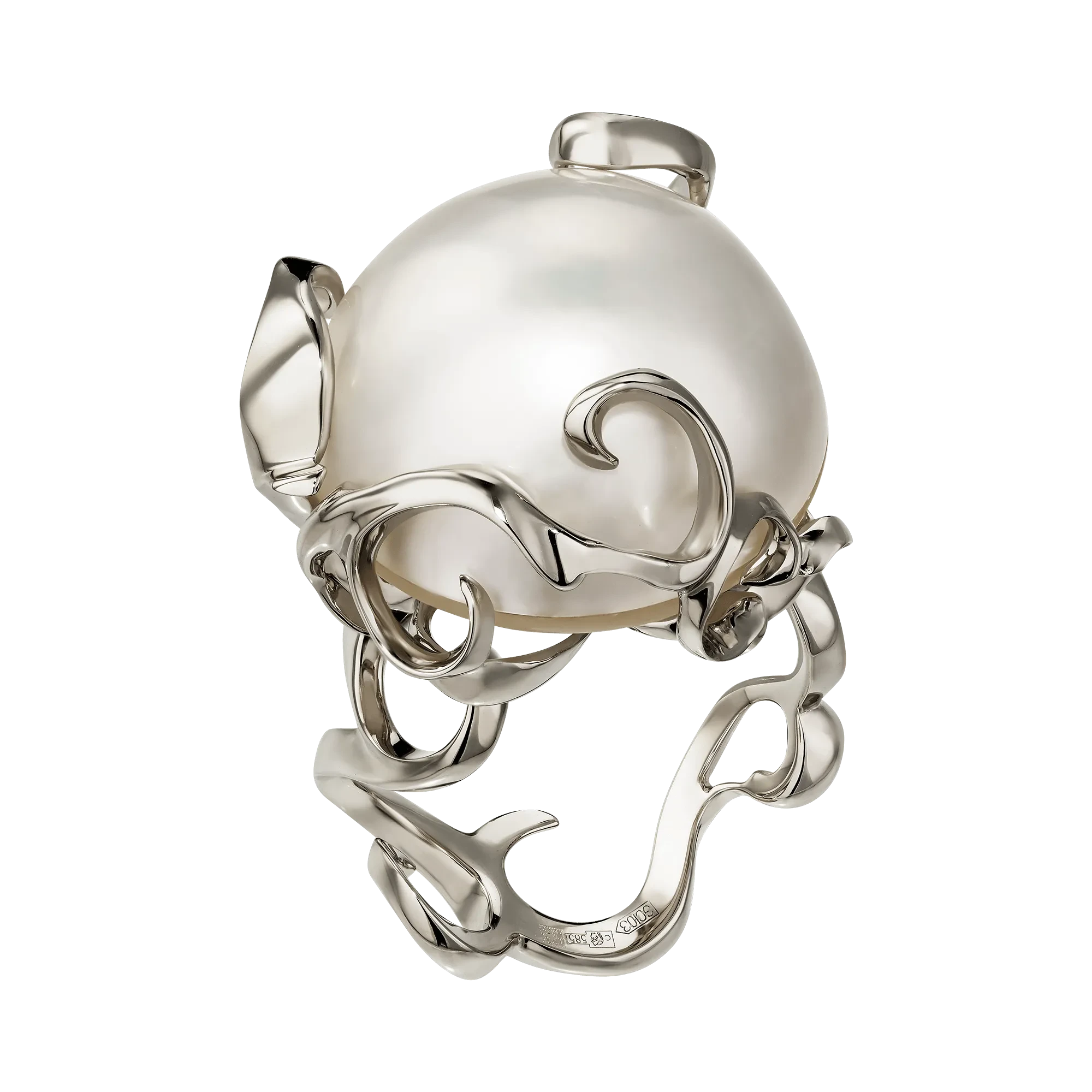 Через призму такой художественной аналогии игристого напитка и даров глубин как признаков высшего общества, очень гармонично воспринимается ювелирный сет из белого золота. Жемчужины мастера Maxim Demidov поместили в чрезвычайно изящные оправы. Три легких пузырька общим весом 78,89 карат, напоминающих об игре благородного напитка в бокале, будто летят ввысь, презирая законы тяготения.
