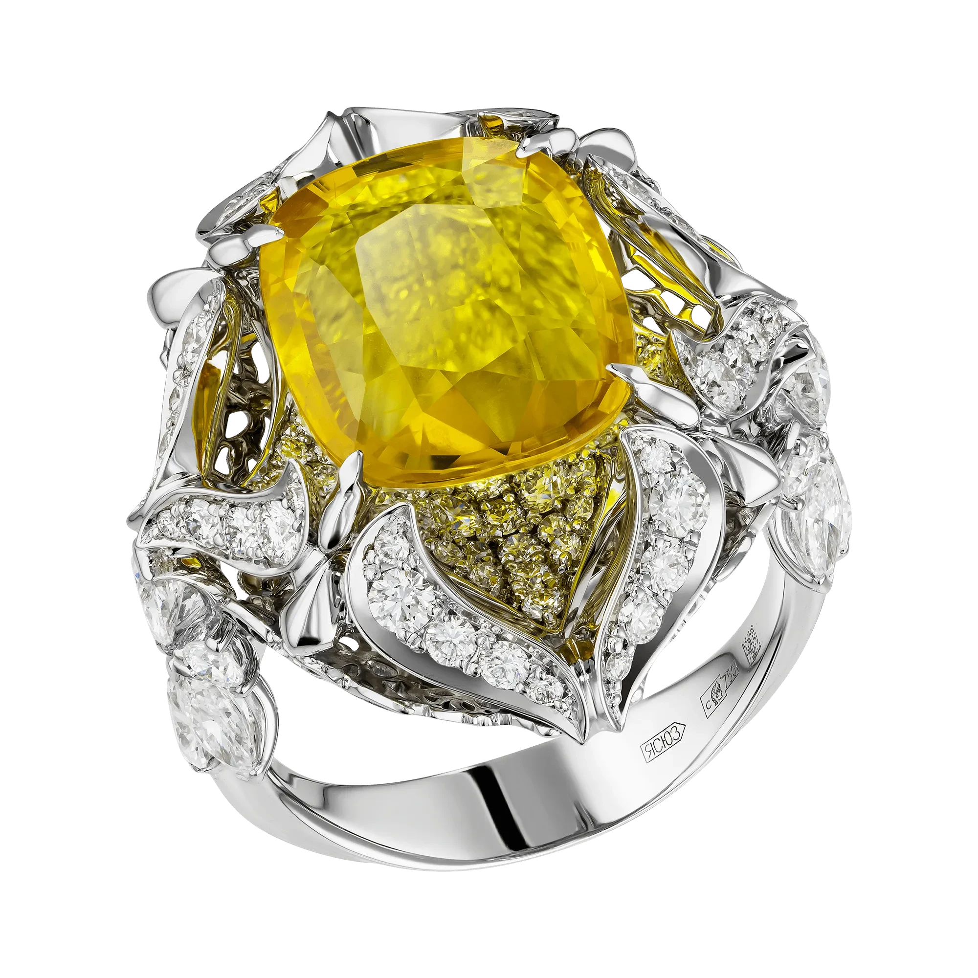 Гарнитур «Свет Монмартра» — это драгоценная история о Париже, где ночь никогда не бывает по-настоящему тёмной, а свет превращается в искусство. Жёлтые сапфиры общим весом 13,20 карата, привезённые со Шри-Ланки, сияют так, будто вобрали тепло южного солнца и золотистое мерцание вечерних огней на склонах Монмартра.