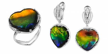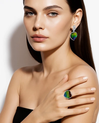 Earrings: Ammolite Doublet (2) 21.91 ct;